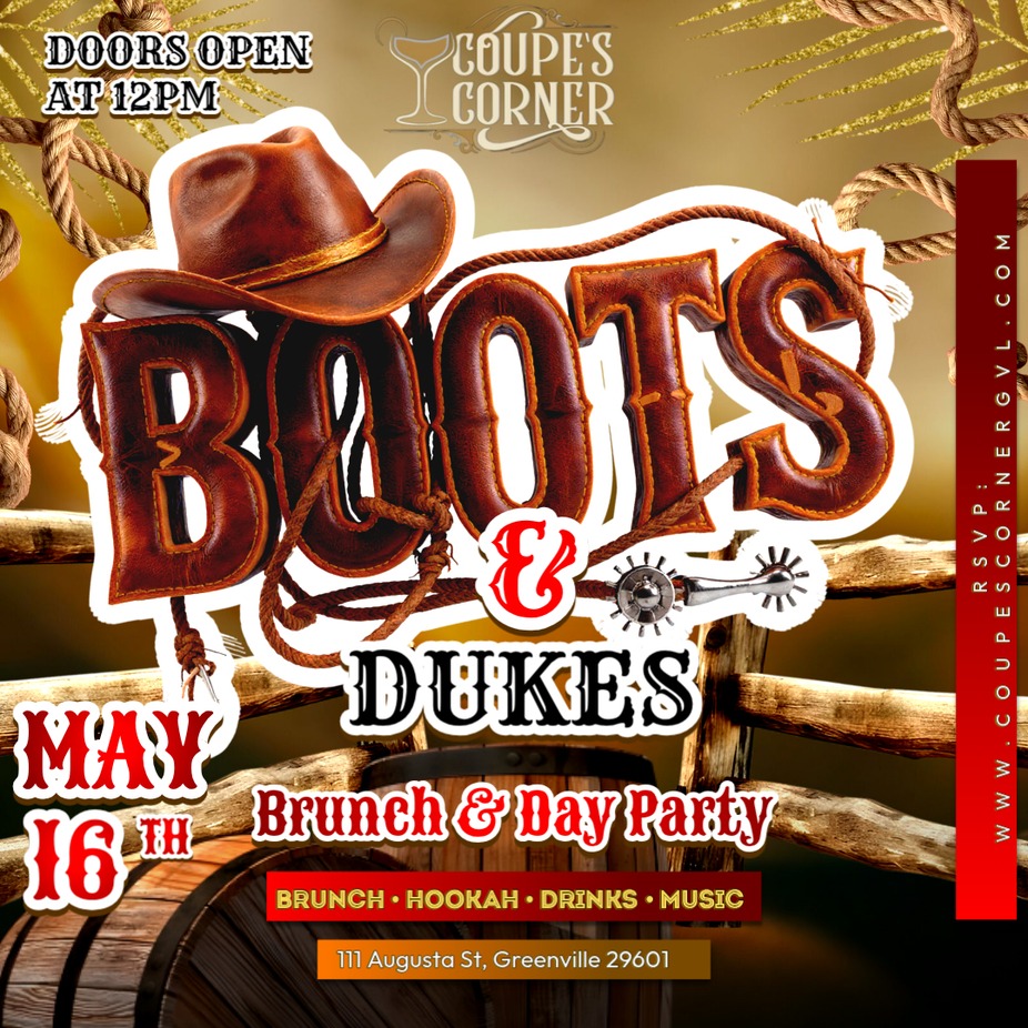 Get ready to step out in style—Boots & Dukes is taking over Coupe’s Corner for a daytime experience like no other. This high-energy day party blends Southern flair with upscale vibes, bringing together great music, bold fashion, and an unforgettable atmosphere.