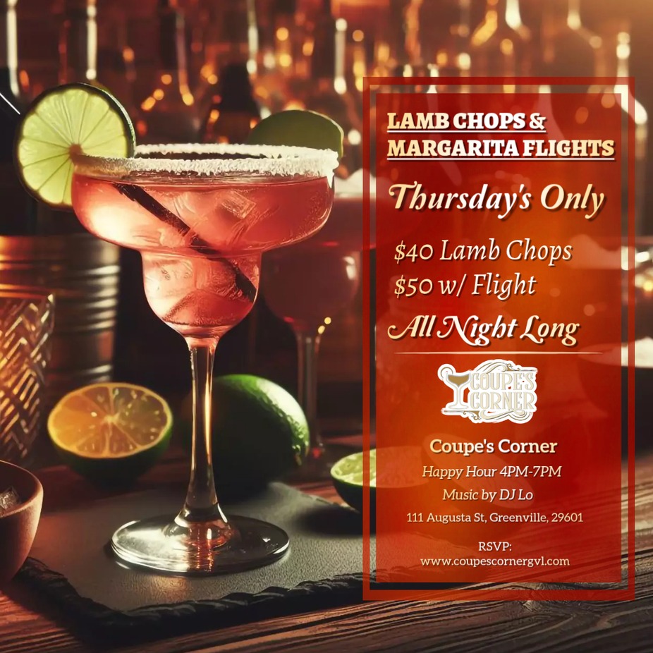 Elevate your Thursday nights at Coupe’s Corner with a premium dining and cocktail experience you won’t find anywhere else.